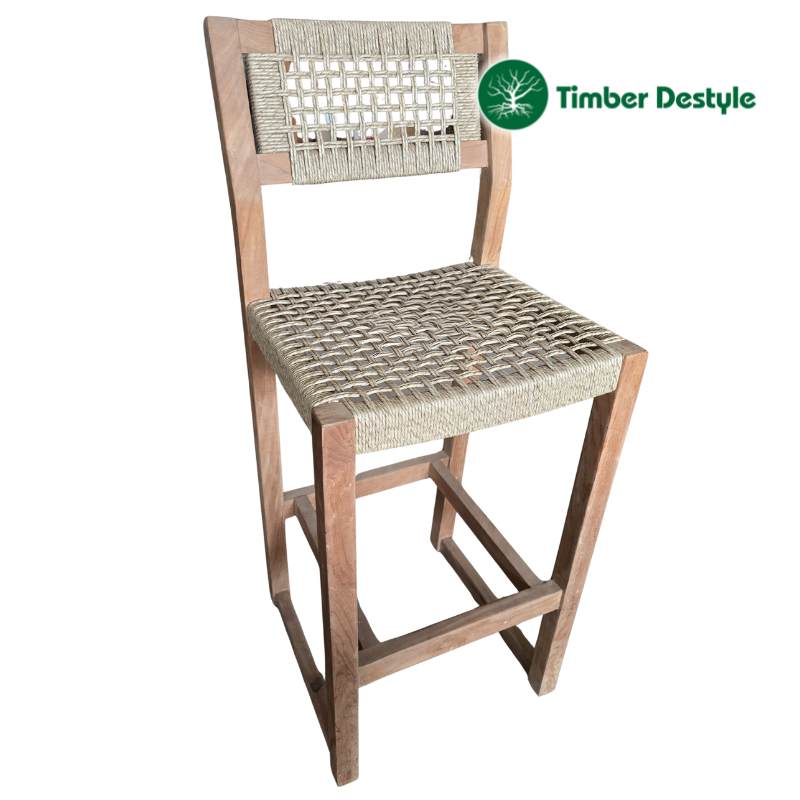 BAR Σκαμπό Natural Teak Rope – 45×44×110 cm – Timber Destyle