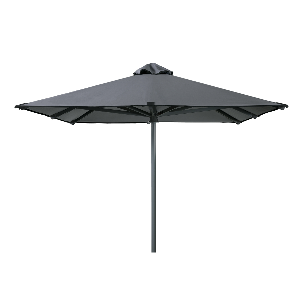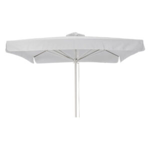 Τετράγωνη ανοιγόμενη ομπρέλα διαστάσεων 2,20 x 2,20 m, κατασκευασμένη με σκελετό από αλουμίνιο βαμμένο με ηλεκτροστατική βαφή για αυξημένη αντοχή.