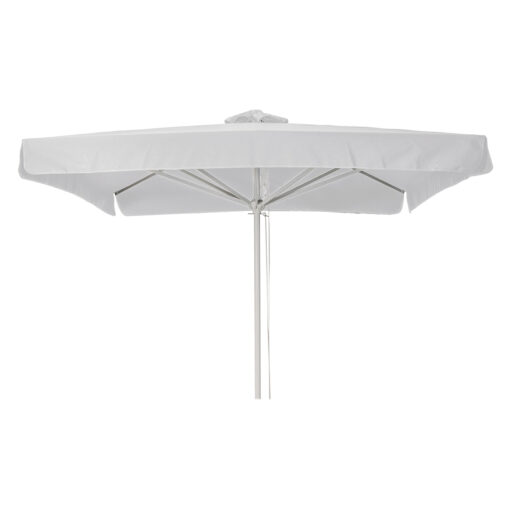 Τετράγωνη ανοιγόμενη ομπρέλα διαστάσεων 3,00 x 3,00 m, με σκελετό αλουμινίου βαμμένο με ηλεκτροστατική βαφή για αυξημένη αντοχή και προστασία από τις καιρικές συνθήκες.