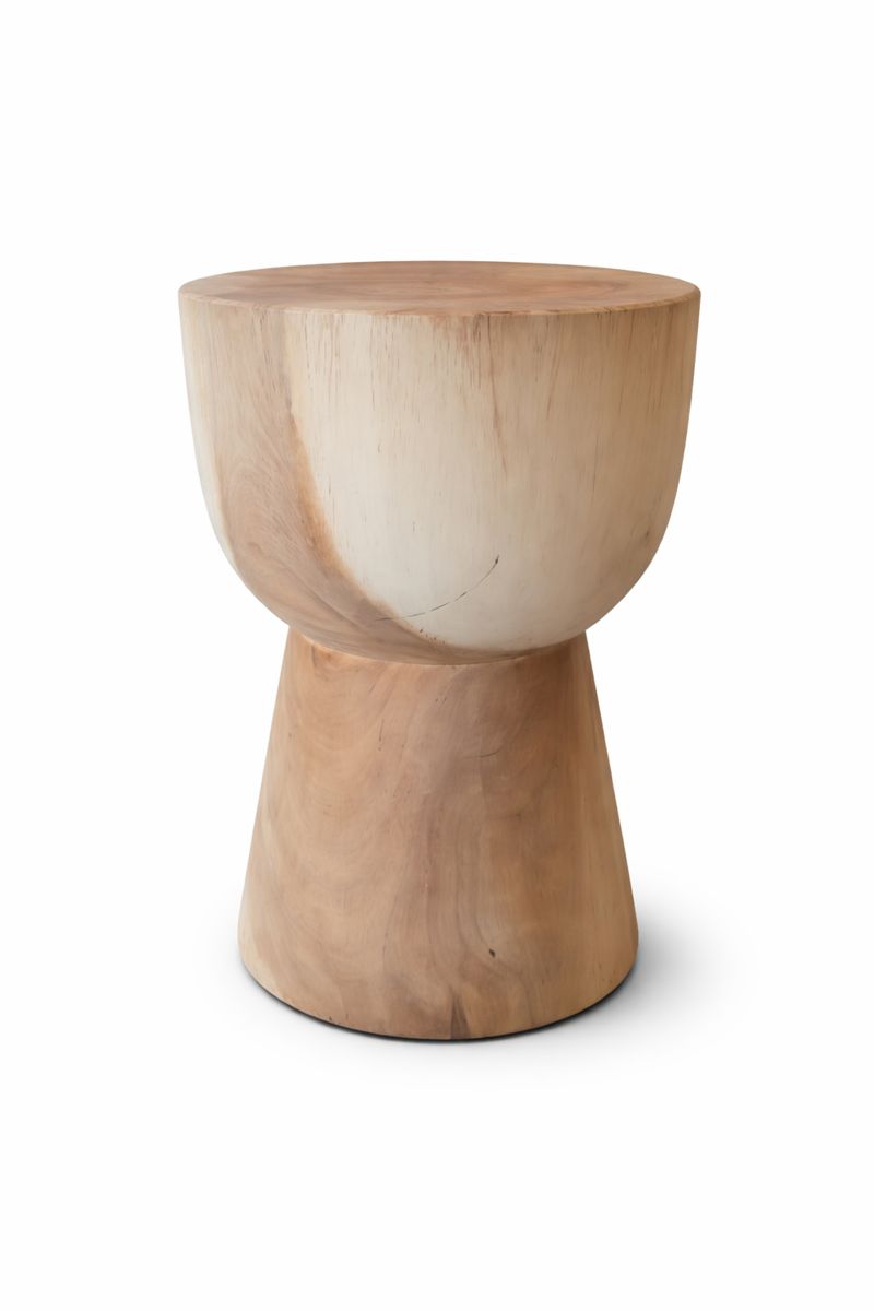 Χειροποίητο σκαμπό από μασίφ ξύλο suar, με λιτή αλλά εντυπωσιακή goblet σχεδίαση που αναδεικνύει τη φυσική ομορφιά του ξύλου. Οι απαλές καμπύλες και το προσεγμένο φινίρισμα δημιουργούν ένα διαχρονικό έπιπλο που ισορροπεί ιδανικά ανάμεσα στη λειτουργικότητα και την αισθητική.