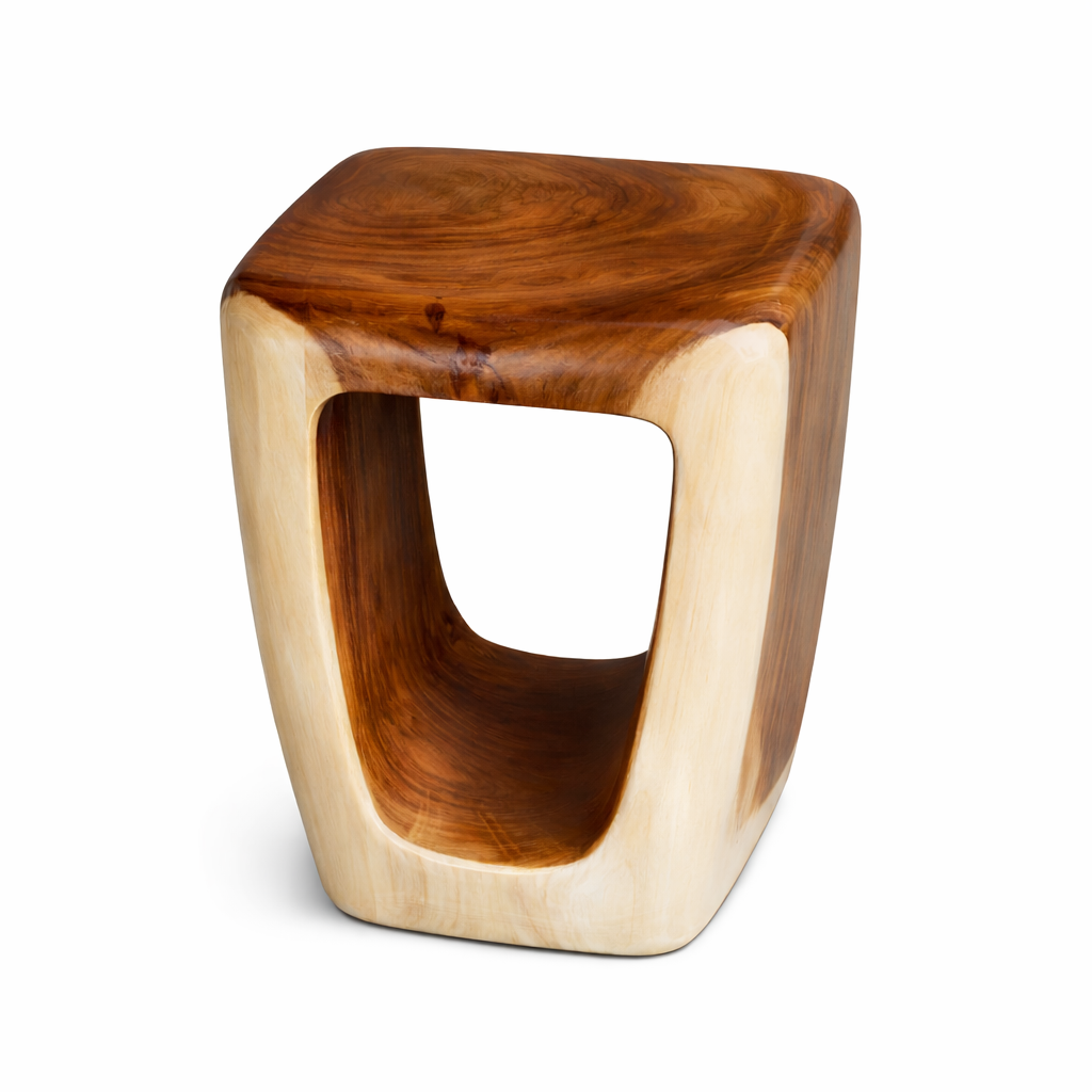 Σκαμπό–τραπεζάκι κατασκευασμένο από μασίφ ξύλο Suar, με συμπαγή κατασκευή και καθαρές, οργανικές γραμμές. Η λεία επιφάνεια και τα φυσικά νερά του ξύλου αναδεικνύουν την ποιότητα του υλικού, προσφέροντας αντοχή και σταθερότητα.