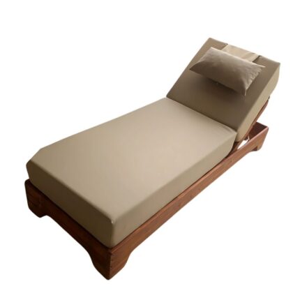 Ο σκελετός αλουμινίου προσφέρει αντοχή στη φθορά και στις καιρικές συνθήκες, ενώ το αναπαυτικό στρώμα 8cm εξασφαλίζει άνεση και στήριξη.  Ο διαχρονικός σχεδιασμός και το ουδέτερο χρώμα την καθιστούν κατάλληλη για διάφορους χώρους φιλοξενίας.